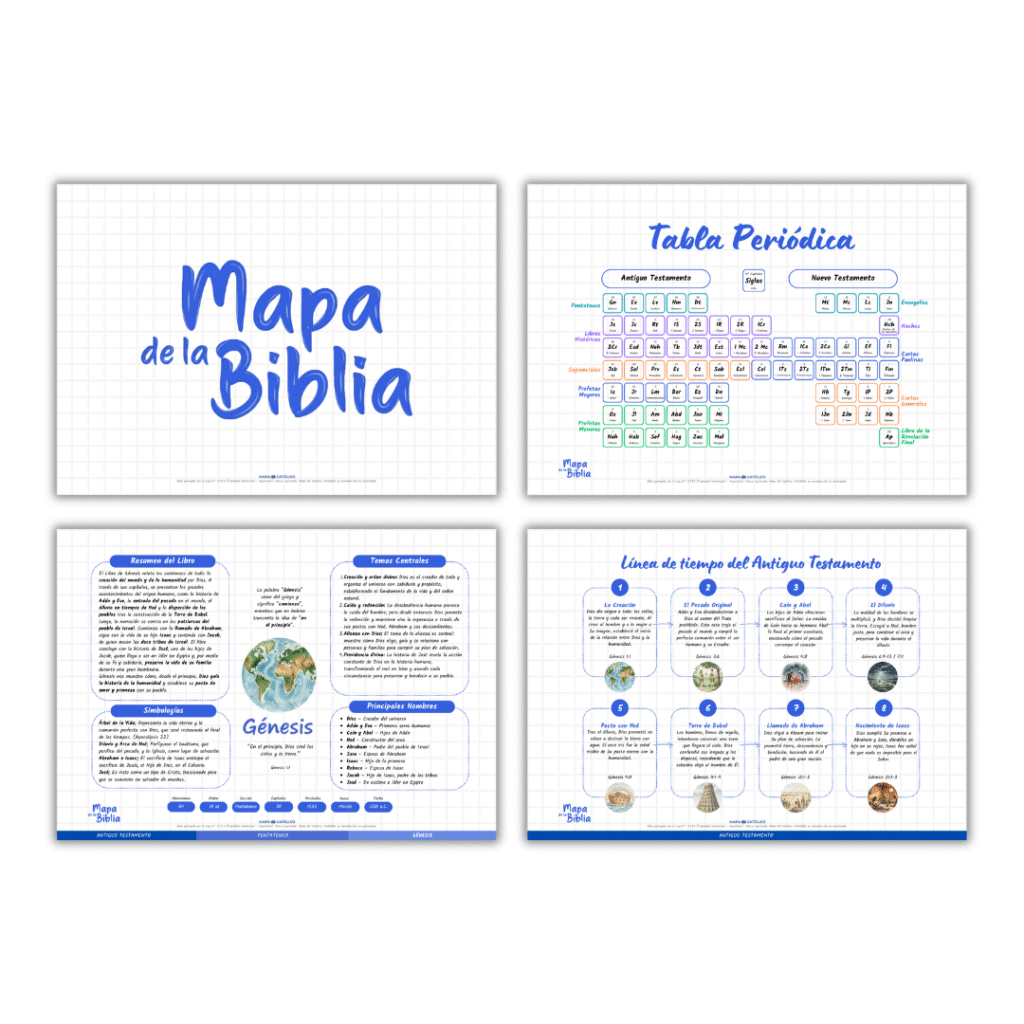 El Mapa de la Biblia está diseñado para ofrecer una perspectiva única y visual, pero no sustituye la riqueza y autenticidad de las Escrituras. El material fue creado como una guía para la Biblia, enriqueciendo tu experiencia de estudio para que tengas el deseo de profundizar aún más en la comprensión de las enseñanzas bíblicas de manera completa y directamente de la fuente.
